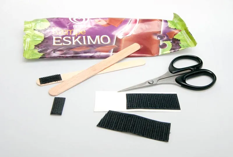 Sticking small pieces of Velcro on ice lolly sticks produces an excellent and cheap fly tying tool. And you get to eat the ice too!
