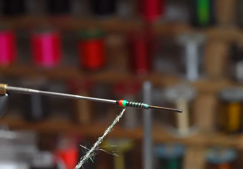 Start the black tying thread and dub it with peacock colored dubbing
