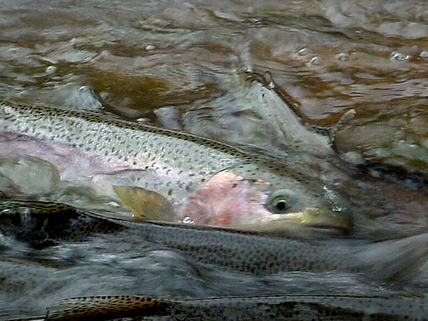 This picture is of a steelhead struggling to complete its journey to spawn.