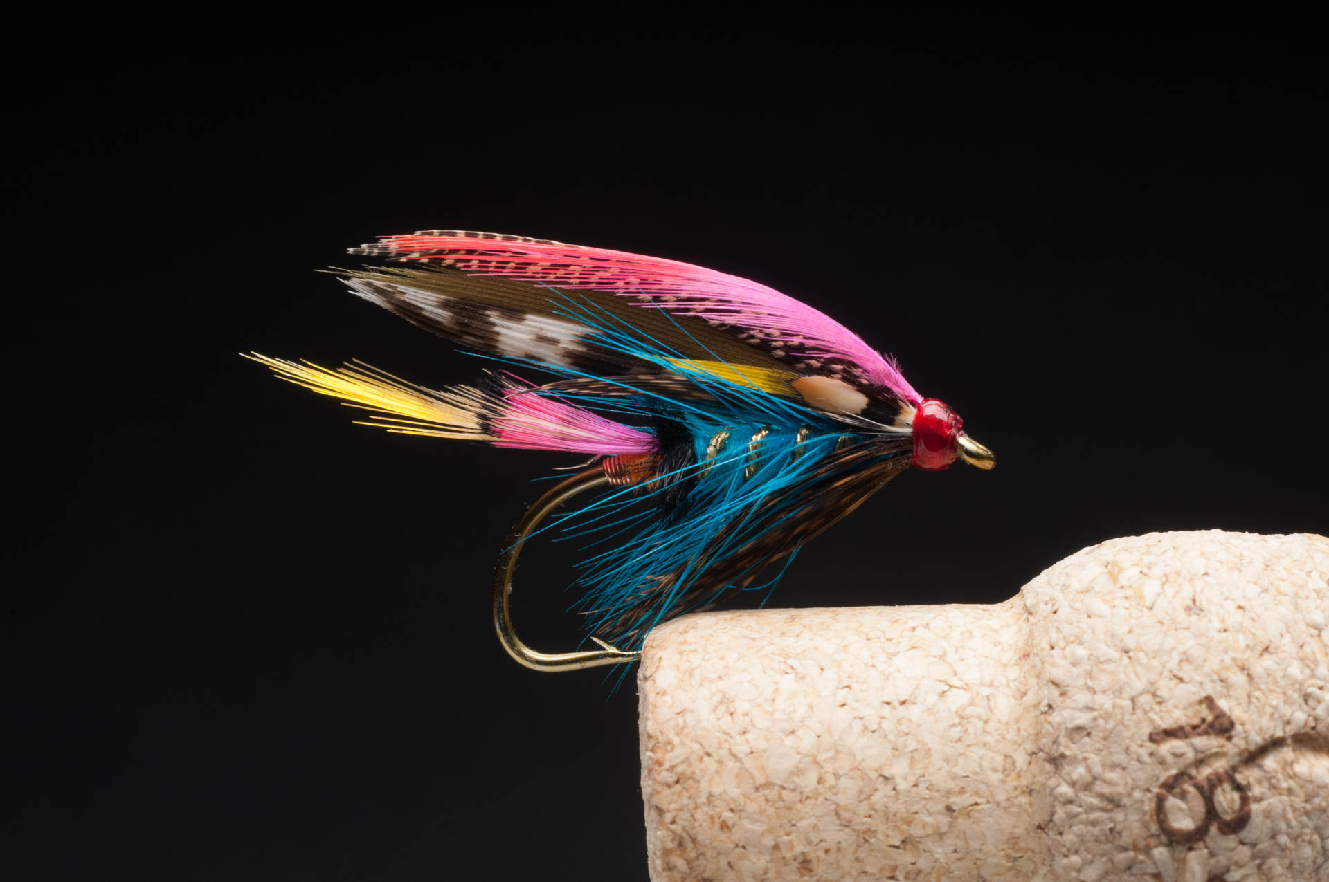A semi-classic salmon/wet fly from the ever inventive Geert Werbrouck from Belgium. This fly was part of a batch that I got in exchange for some flies he sent me. This has all Geert's hallmarks: color, lots of materials, beefiness, large head and not least... pink!